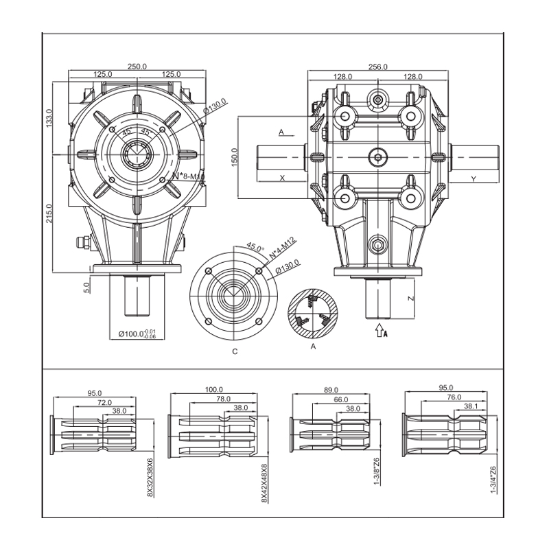 อัตราการส่งสัญญาณเพิ่มความเร็ว KLF250 คือ 1: 3 สามารถปรับให้เข้ากับเครื่องจักรและอุปกรณ์การเกษตรหลายประเภทเครื่องจักรบดฟางมัลเชอร์เครื่องจักรกู้คืนฟิล์มที่เหลืออยู่เกษตรกรรมและอื่น ๆ เกียร์มุมมอง Gleason ได้รับการประมวลผลด้วยความแม่นยำสูงด้วยความแม่นยำสูงการสูญเสียการส่งสัญญาณขนาดเล็กและประสิทธิภาพการถ่ายโอนพลังงานสูงความเร็วอินพุท 540R/นาทีความเร็วในการส่งออก 1620R/นาทีพลังงาน 80hp กำลังสูงสุด 100hp